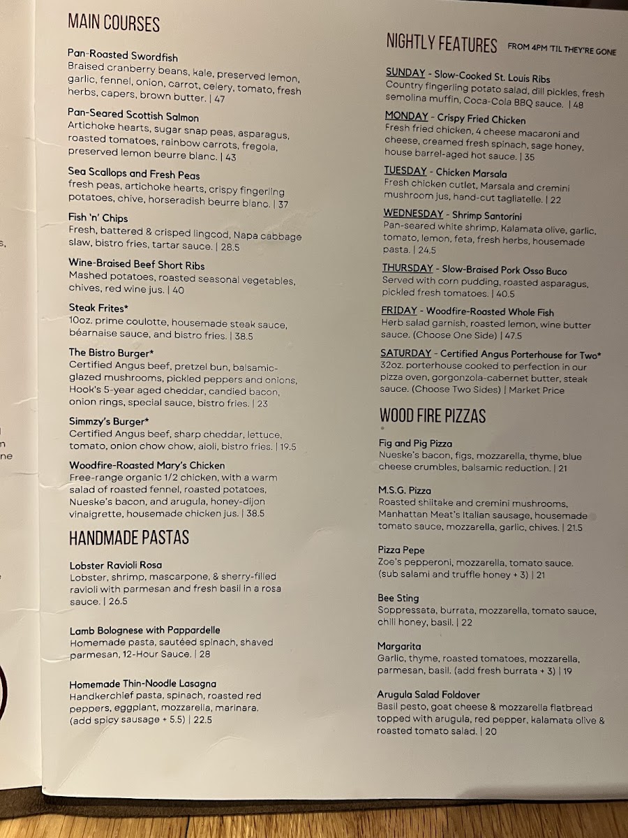 Bistro-style cocktails and a curated wine list accompany the food, creating a well-rounded experience that suits everything from casual bites to a more elevated outing. The menu’s versatility also ensures there are options for different tastes and preferences, reflecting the welcoming and inclusive nature of the restaurant.